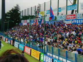 サッカー専用スタジアムということで、西が丘を思い出す。選手との距離も近く、一体感があった。 |