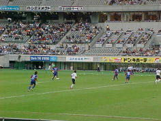 | 開始前のダンスイベント?それにしてもこの旗は露骨じゃない。新聞屋の旗とはねえ。やっぱFC東京のフラッグにしてよ。 | |