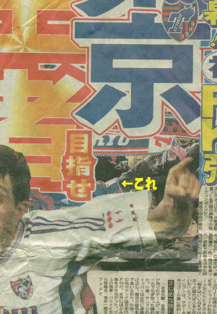 管理人の2000年3月11日のJ1開幕戦(横浜)の姿です!顔が見出しの文字に隠れましたが(>_<)・・・。観戦に行けばもしかしたら、↓のように、観戦翌日スポーツ新聞の一面トップに載るかもしれないぞ!